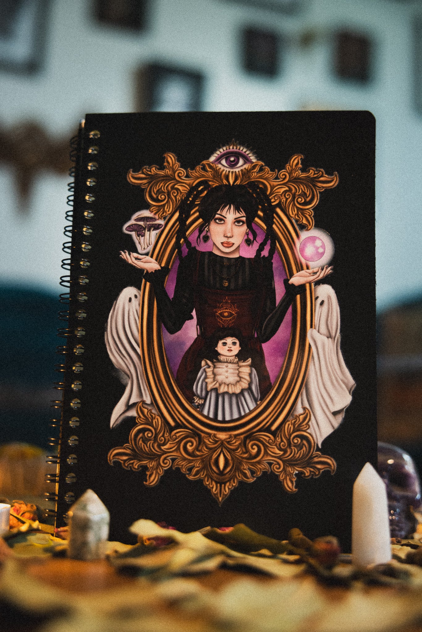 Capture your thoughts, dreams, and affirmations in this hardcover notebook featuring a one-of-a-kind design of Kelsi Davies and her haunted doll, Lola. Mysterious, beautiful, and a little eerie, it’s the perfect blend of dark whimsy and spiritual energy. The cover features stunning original artwork by LavenderSeance, with a hauntingly beautiful portrait on the front and a whimsical babydoll butterfly on the back making this a true collector’s piece. Perfect for: Manifestation & affirmations, Journaling or daily reflections, Creative writing or sketching, Spiritual or witchy practices. Product Details: Size: 8.5 in x 5.5 in, Hardcover for durability, Lined pages for easy writing, and Makes a magical gift for yourself or a fellow creative soul. Unleash your inner mystic one page at a time.